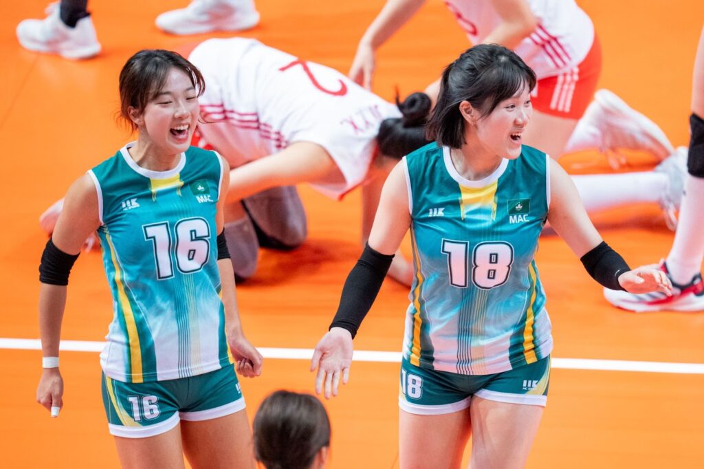 至於今日首場賽事,中國隊甫開賽施展凌厲攻勢,但因二傳吳佳慧受傷退下火線打亂節奏,一度與中國澳門隊打成8-8。但球隊其後迅速站穩陣腳,趙喆熙兩次直接發球得分重整士氣,加上正選上陣的副攻王奧芊多次快攻得手,身高優勢亦令對手攔防疲於奔命,最終先拔頭籌。中國隊其後兩局續掌控比賽節奏,全場15次直接發球得分,未遇上太大考驗下以直落三局取勝(25-12、25-13、25-7)。王奧芊今仗取得全場最高的16分,而李晨瑄及趙喆熙亦延續佳態,兩人合共貢獻25分。