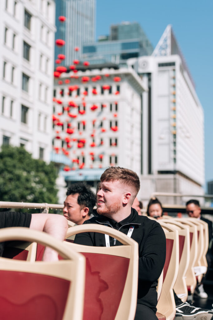 加蘭韋爾遜(Kyren Wilson):「這是我第一次在日間乘坐山頂纜車,發現景色比著名的夜景更為漂亮,沿途風光宜人,非常舒適。看著窗外的城市景觀隨纜車爬升而變化,直到在山頂將維港美景盡收眼底,真的讓我非常享受。對我而言書法遠比桌球困難,但我樂在其中。」